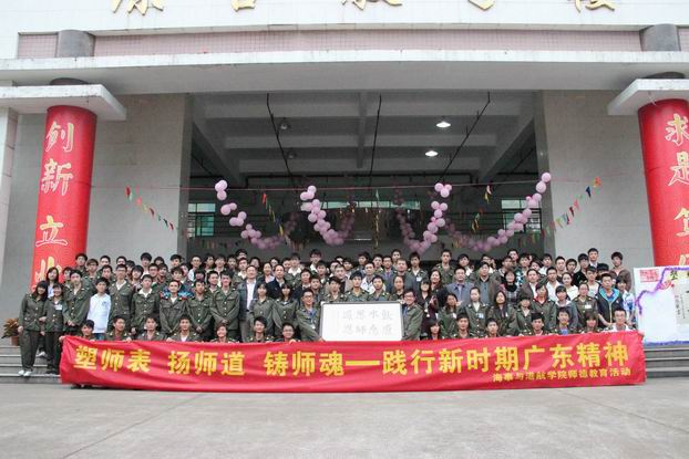 12月10日下午,我院在北校区综合楼首层隆重举行“塑师表、扬师道、铸师魂——践行新时期广东精神”师德教育系列活动成果展示暨示范性团组织生活。学院谢东建院长助理、北校区管理办司徒汉主任、北校区党委郑立高书记、北校区团委刘青书记、学生工作处邱晓毅副处长、招生就业处邓海荣副处长、我院党总支伍雄晖书记、黎法明副院长、综合部赖云灵主任、部分班级的班主任以及二级学院辅导员老师、学生代表近200人参加了本次活动。