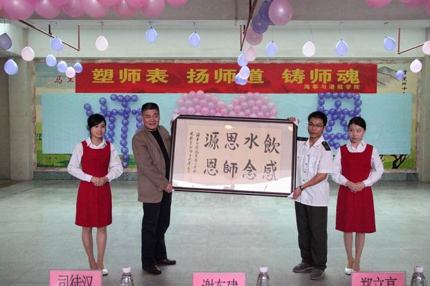 本次师德教育活动成果展示,主要通过视频、合唱、 情景剧、手语表演、舞蹈、诗朗诵等环节。活动中,学生代表有感而发、现场挥豪,并为老师赠送了《饮水思源,感念师恩》书法作品。活动结束后,领导、老师与全体同学合影留念。