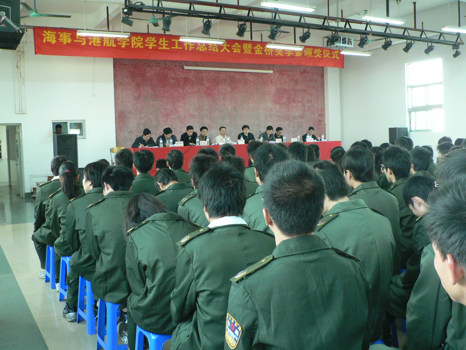 12月24日,海事与港航学院在综合楼隆重举行了2008年学生工作总结大会暨金桥奖学金颁奖仪式。会议由辅导员练崇权老师主持。
