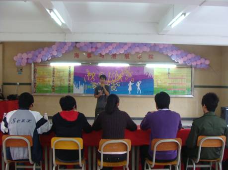 青春季节,活力骄阳,我院学生们正直青春花季,因此,2011年04月06日,在教学楼首层,我院隆重举办十大歌手比赛初赛,为学生们提供了一个活力四射,展示自我的青春舞台。  莅临到场的嘉宾有海事与港航学院分团委指导老师肖泽英老师、叶培发老师、海事与港航学院分团委副书记朱文波,执行主席张俊荣、副主席孙亚超、文艺部部长赖新承、商贸学院文艺部部长黄晓然、副部长王韵、信息学院文体部部长林伟健、副部长肖德展、商贸学院体育部副部长何燕清、第八届十大歌手冠军邱志东。