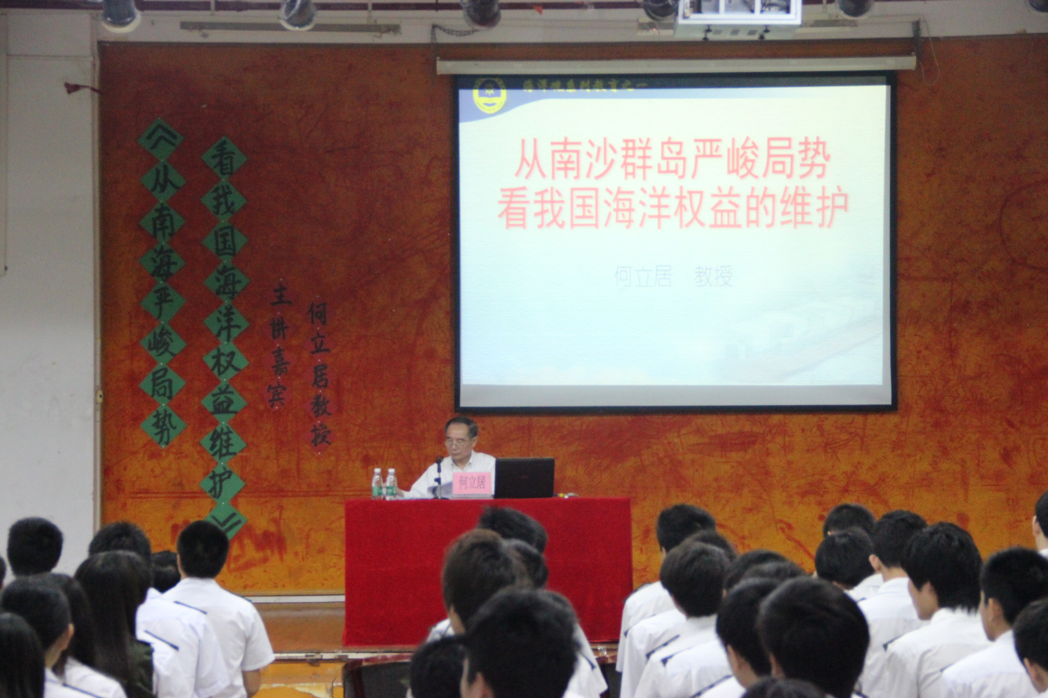 2013年4月1日晚,我院邀请广州航海高等专科学校原副校长何立居教授作《从南海严峻局势看我国海洋权益维护》的专题讲座。海事与港航学院党总支伍雄晖书记、练崇权老师、叶培发老师及航海类专业学生300多人参加了讲座。