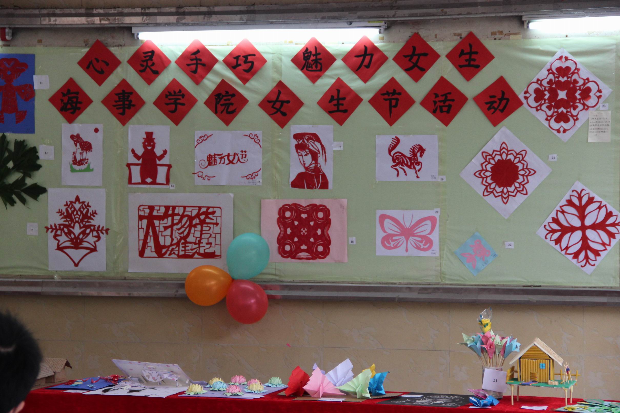 本届女生节活动包括环保手工艺品创意设计制作大赛、剪纸大赛等活动,各班级同学积极参与,共创作作品78件。在作品展示现场,选手们以精美的作品、精彩的陈述赢得观众的阵阵掌声。经过一番激烈的比拼和现场观众投票,评选出了剪纸和手工作品的最佳人气奖各1名,优秀作品6名。