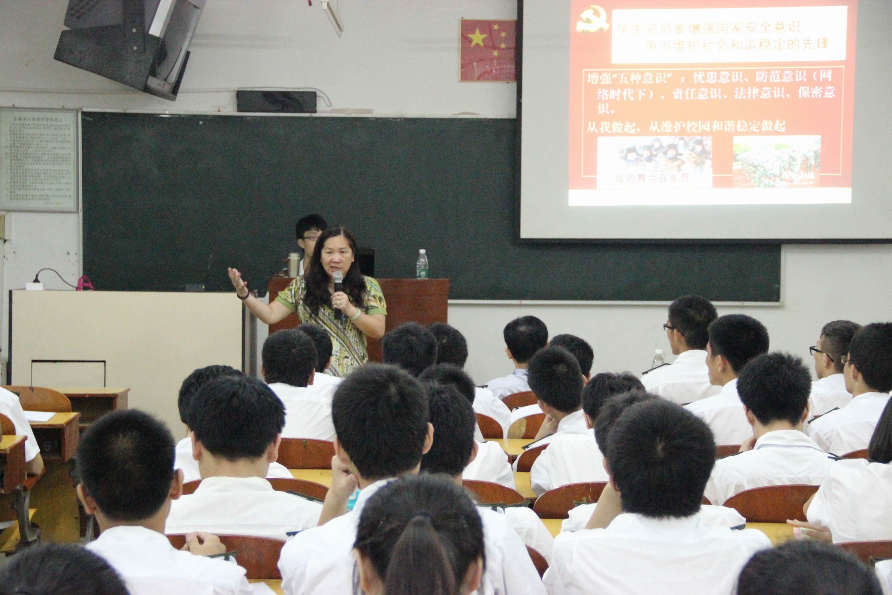 根据当前国际国内新形势及上级安全会议相关精神,以我院《培育和践行社会主义核心价值观实践教育活动》为载体,6月4日19:30分,我院党总支在1栋103教室举行了以《增强国家安全意识 维护社会和谐稳定》为主题的专题教育讲座,讲座由练崇权同志主持,党总支刘青书记主讲。