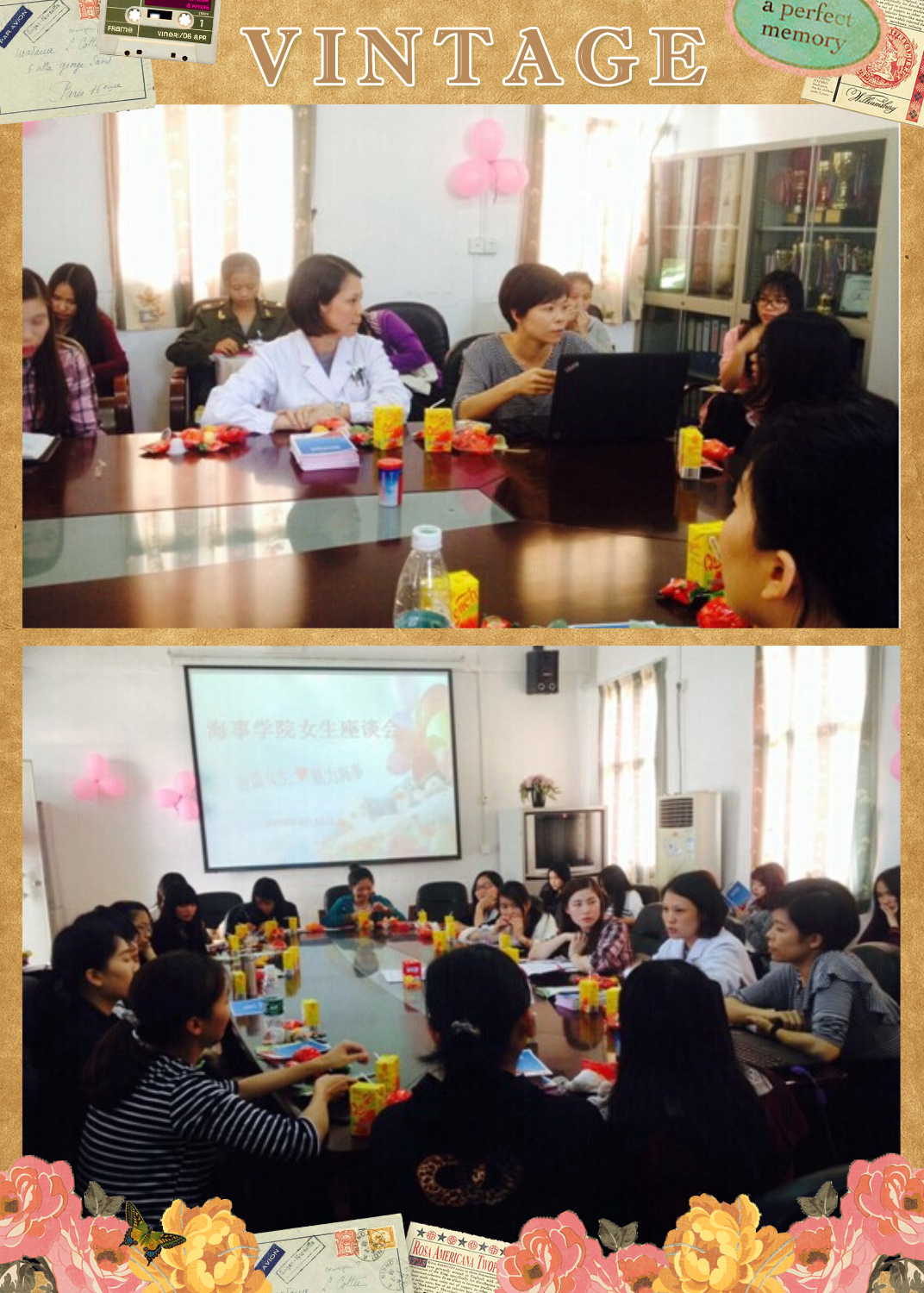 402会议室此时被装点的温馨、美丽,还有饮料水果让人倍感温馨。座谈伊始,刘书记告诉大家此次座谈会是为了帮助女同学们解决情感、心身问题,让女生们更好地融入到海事学院这个温暖的大家庭中,很多女生都频频点头,座谈会中的表现也更加积极。社区医院的曾敏娴医生则为我们讲述了关于登革热的传染源以及预防方法。到了自由发言环节,女生们边吃零食边提问一些关于自身或闺蜜的疑问,社区医院的刘芸医生也以丰富的医学知识为同学们一一解答,踊跃的提问与及时的回答使得现场的气氛非常的轻松愉悦。