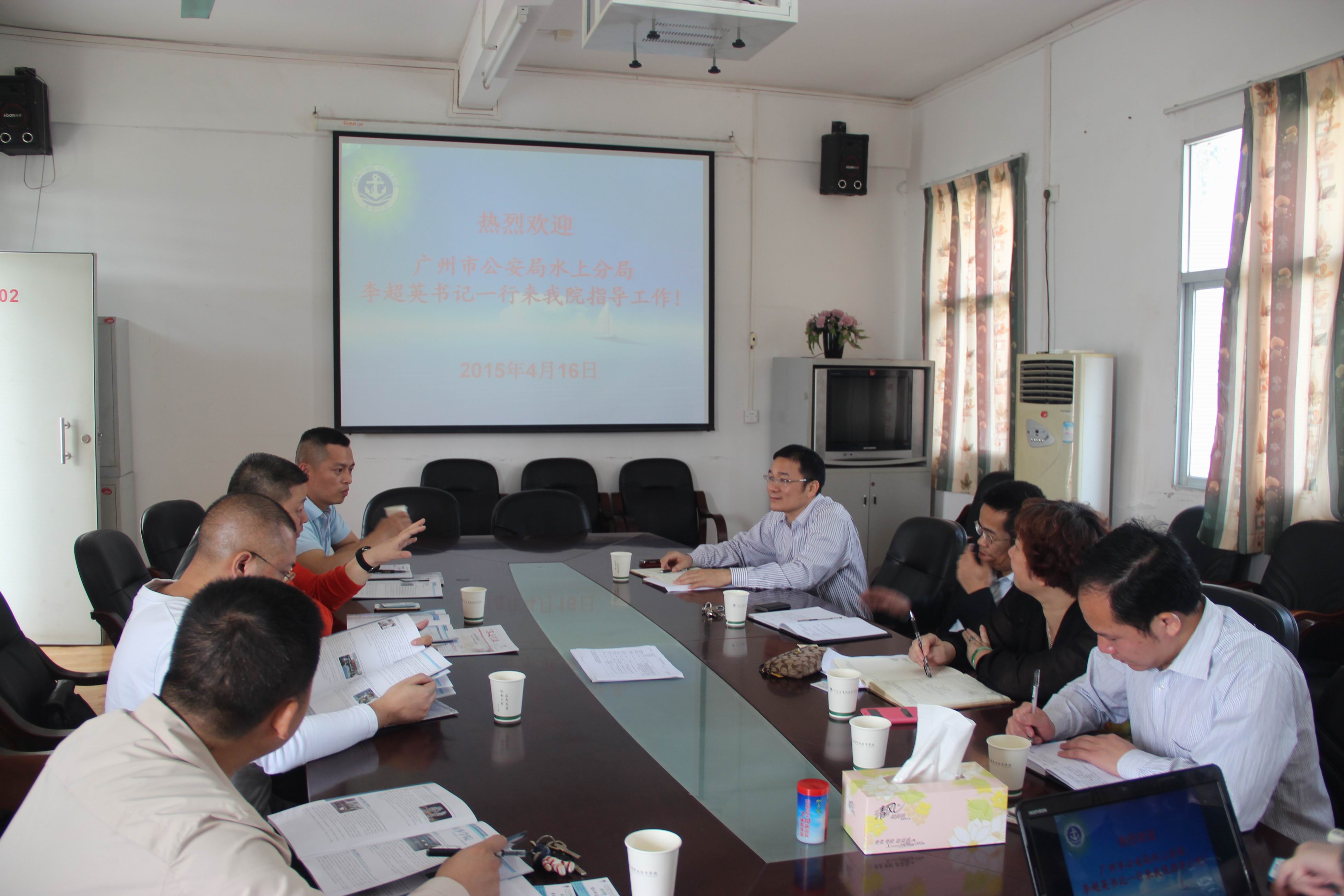 4月16日上午,广州市公安局水上分局党委书记、局长李超英一行4人莅临我院调研航海类专业人才培养及就业情况,海事学院院长蒋祖星、党总支书记刘青、副院长黎法明等参加了调研会。
