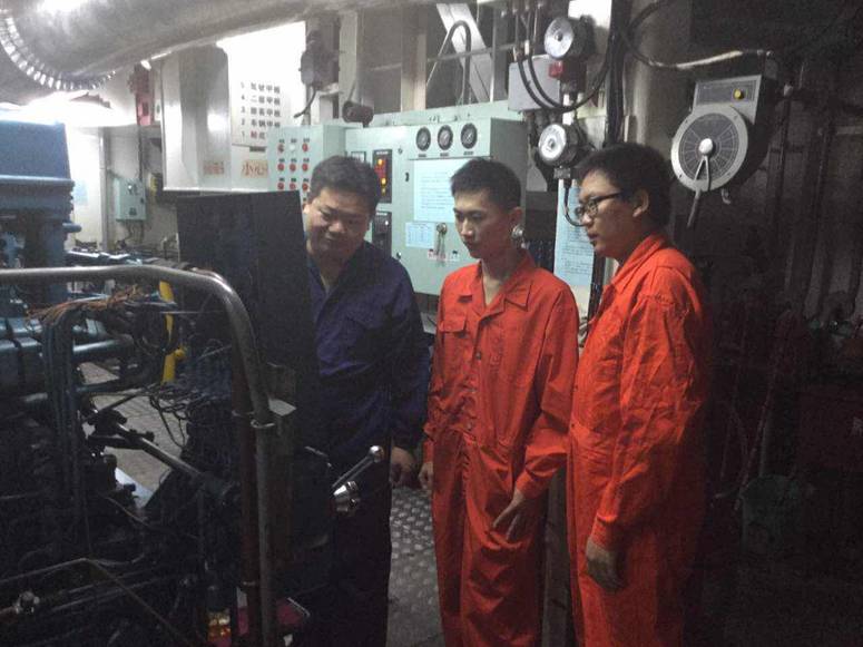 在实习中,轮机专业141班学生对巨大无比的轮船有好奇有期待也有恐惧,但他们也明白了这里以后将是他们坚守的阵地。大海再神奇,陪伴他们的只有轮机的运转;落霞再壮观,他们唯有在甲板下面,巡查、维护、参数的抄写与记录航行机械情况。他们用细心,守护船舶的生命;他们用耐心,确保轮船安全靠岸。
