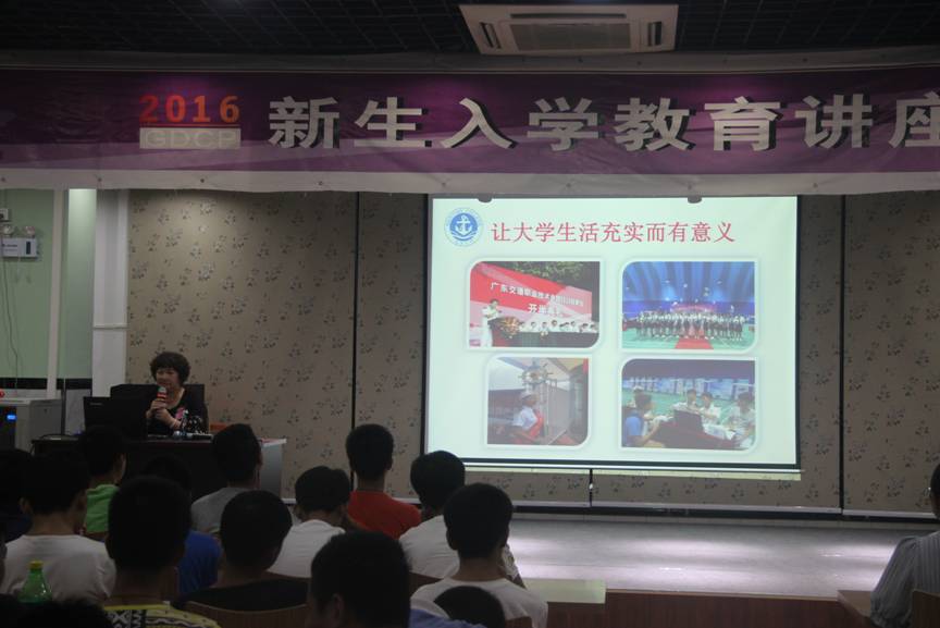 随后,刘青书记通过展示从入学到毕业可以参加的具有航运文化特色的校园活动、创新创业竞赛、技能竞赛等告诉2016级新生大学生活充实而有意义。鼓励大家坚持去课室学习、去图书馆读书、去实训室训练、去操场锻炼,在学生组织、校园活动、社会实践、技能竞赛中磨练自己的能力,通过职业培训、证书考试代表自己的专长,以能力实现职业发展、以专长突破专业限制。