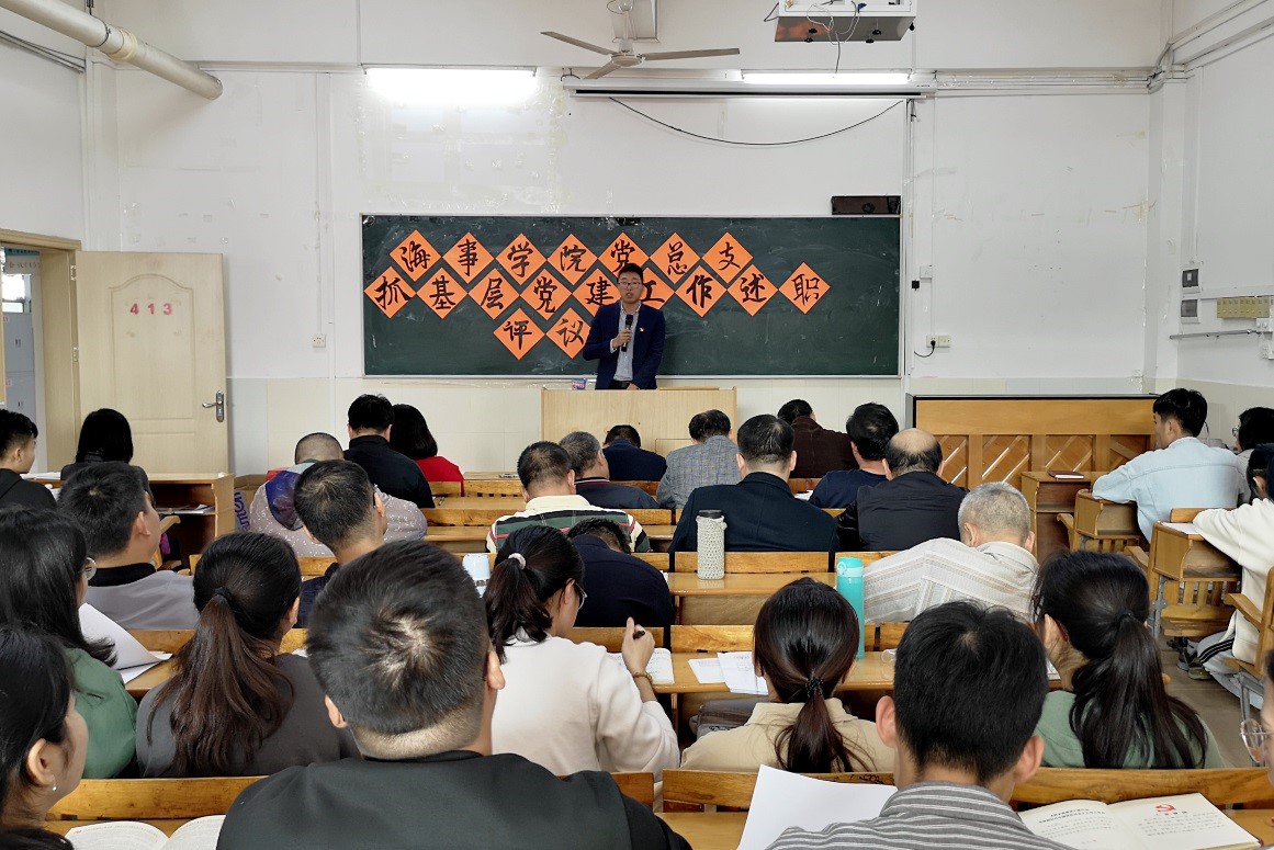 为深入贯彻落实党的十九大、十九届四中全会和习近平总书记重要讲话精神,全面推进“不忘初心、牢记使命”主题教育活动,推动全面从严治党向基层纵深发展,12月30日,海事学院党总支在9栋413室组织召开2019年度基层党组织书记抓基层党建工作述职评议会。学院全体师生党员参加会议,会议由专职组织员主持。