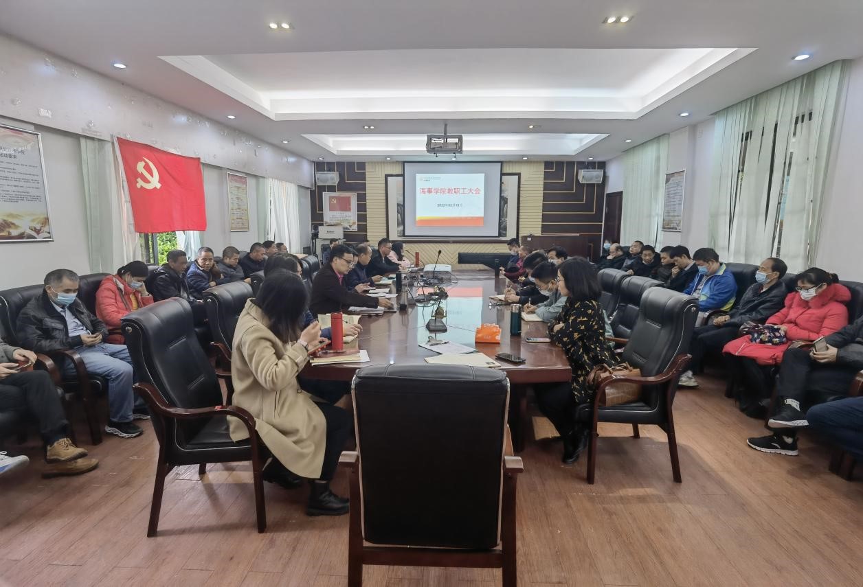 2月18日上午,海事学院召开教职工大会,传达学习学校有关工作会议精神,部署海事学院新学期工作。